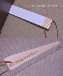 こちらの天然木とリノリウムの異素材を組み合わせた、シンプルで機能的なドアストッパーは、