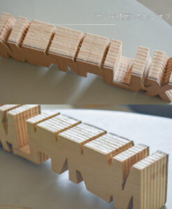 こちらのロゴオブジェは、好きな言葉やロゴを、合板とリノリウムで立体的に仕上げます。