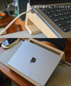 こちらは天然素材リノリウムを使用したミニマルで機能的なノートPCスタンドです。