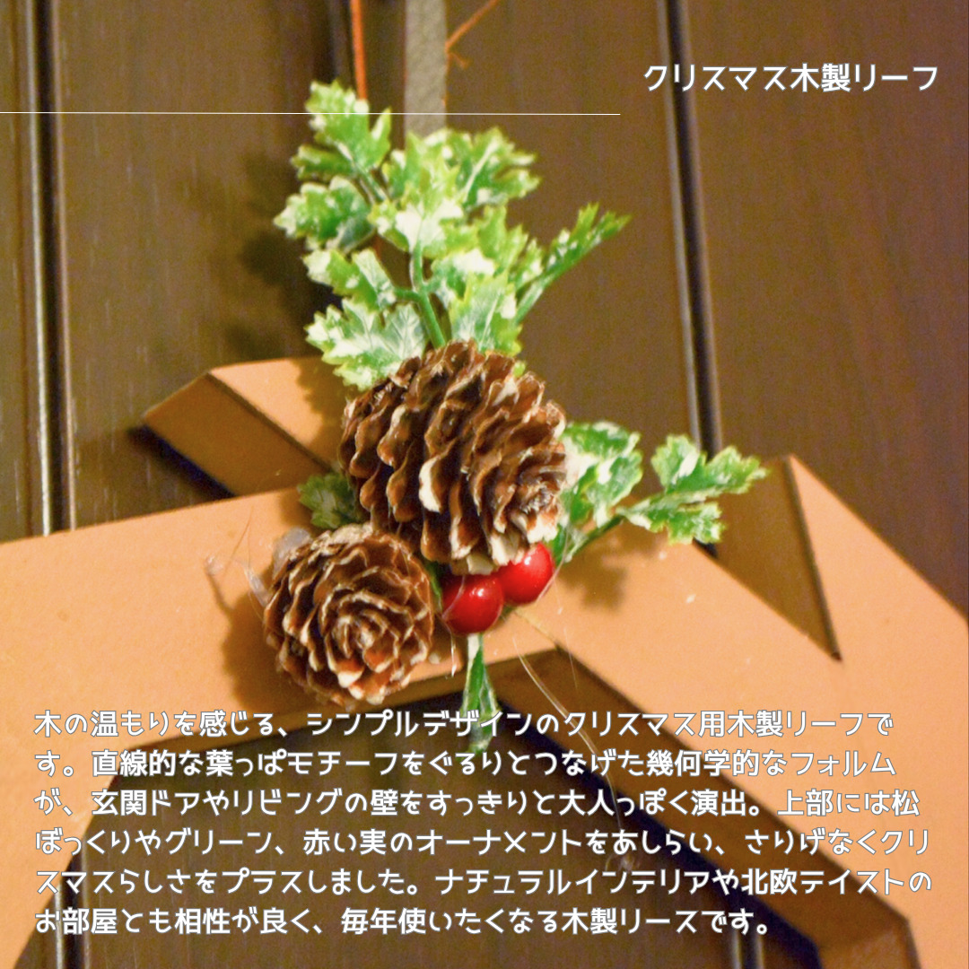 ナチュラルインテリアや北欧テイストのお部屋とも相性が良く、毎年使いたくなる木製リースです。