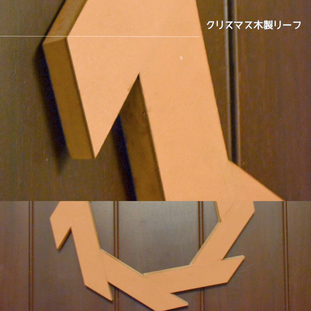 こちらは木の温もりを感じる、シンプルデザインのクリスマス用木製リーフです。