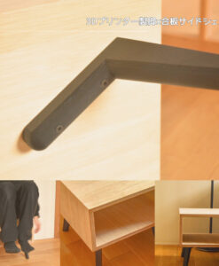 合板の箱形シェルフに、3Dプリンターで成形した専用脚を組み合わせたサイドシェルフです。