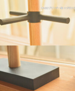 縦に伸びる無垢材の支柱と、水平に配置されたバー構造により、複数本のメガネをすっきりと収納・ディスプレイできます。