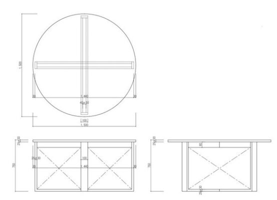 丸天板直径150センチ・脚の高さ75センチのテーブルが希望です。